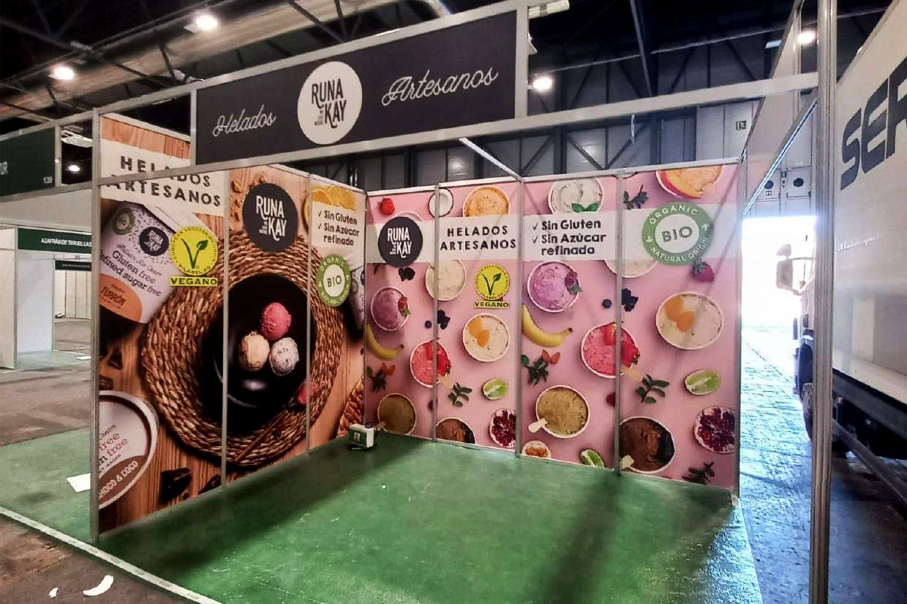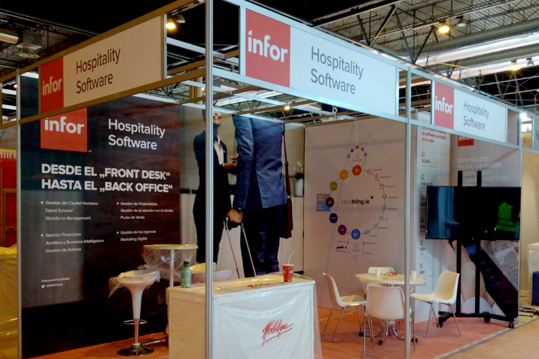 El ejemplo que indicamos, es un stand decorado con VINILO monomérico